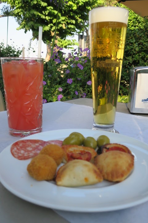 I Italien är det alltid snacksbuffé till om man köper dricka - det var mys. |